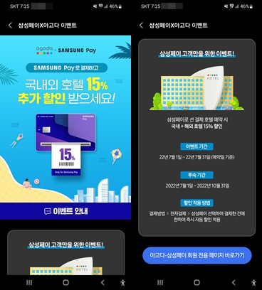 - 삼성페이 실행 → 메뉴 → 이벤트 → 삼성페이X아고다 이벤트 접속 → 아고다-삼성페이 회원 전용 페이지 바로가기